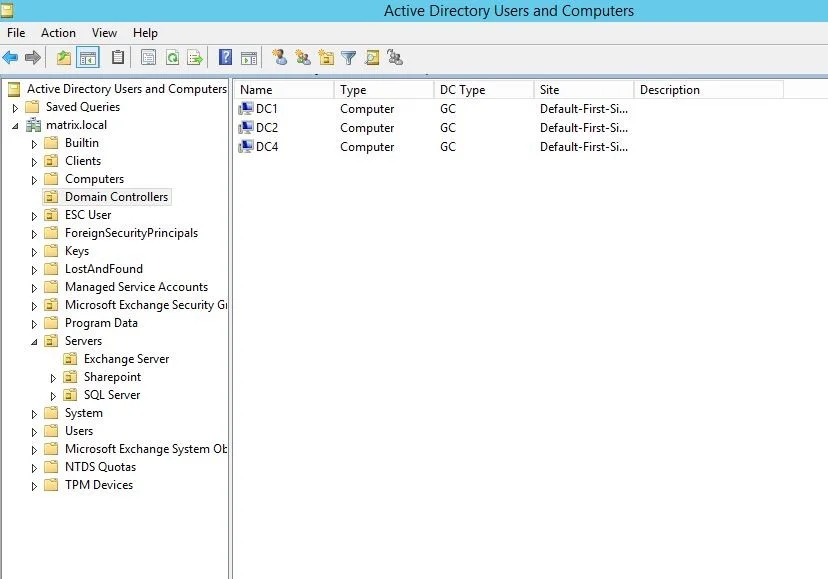 20. Wir vergewissern uns an dieser Stelle nochmal, dass unser DC auch im Active Directory Users and Computers als Domain Controller auftaucht.